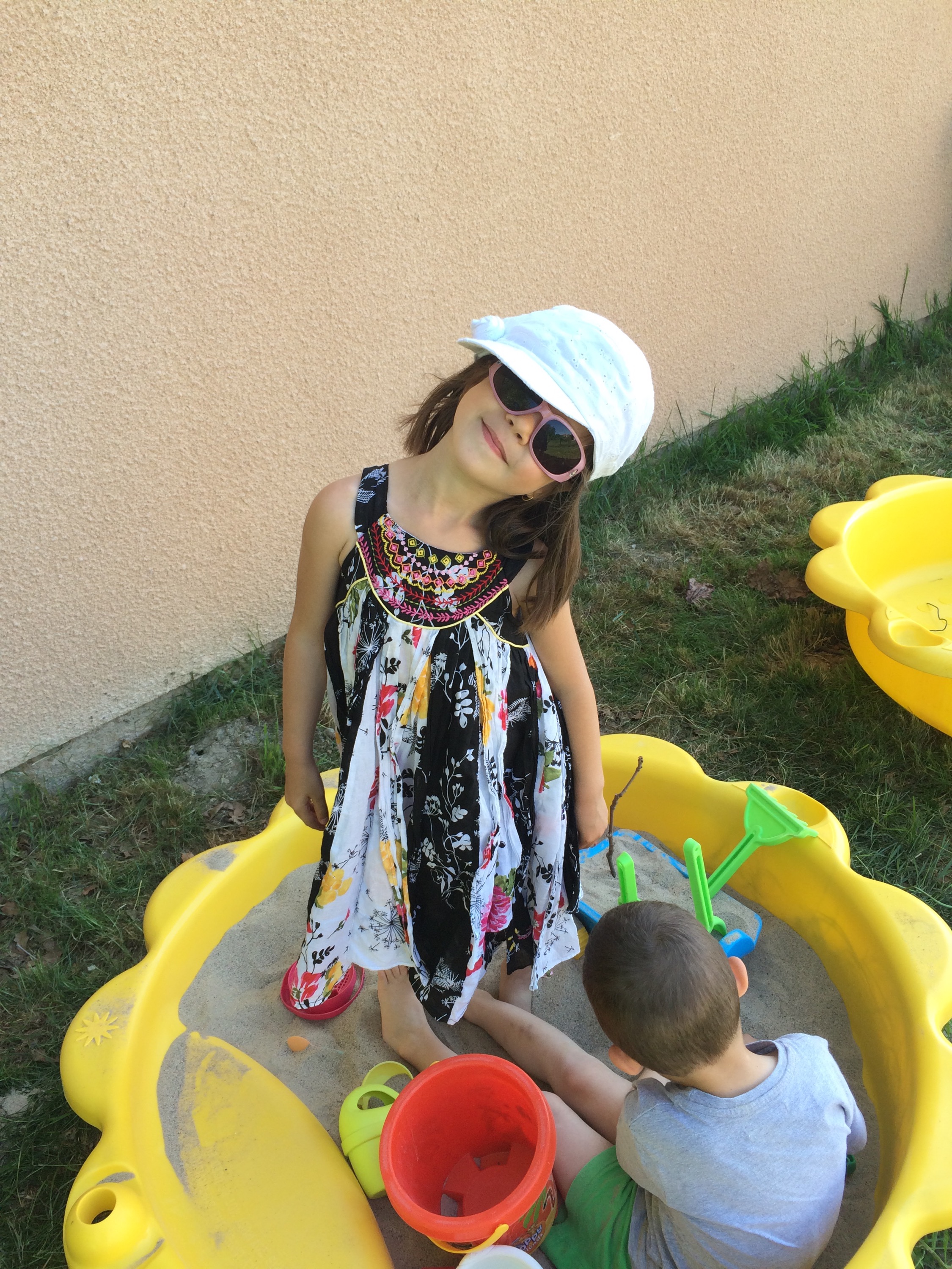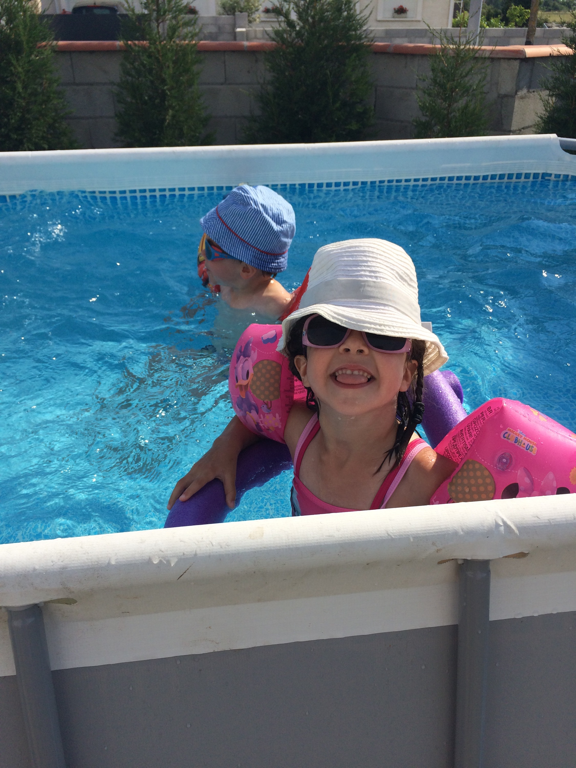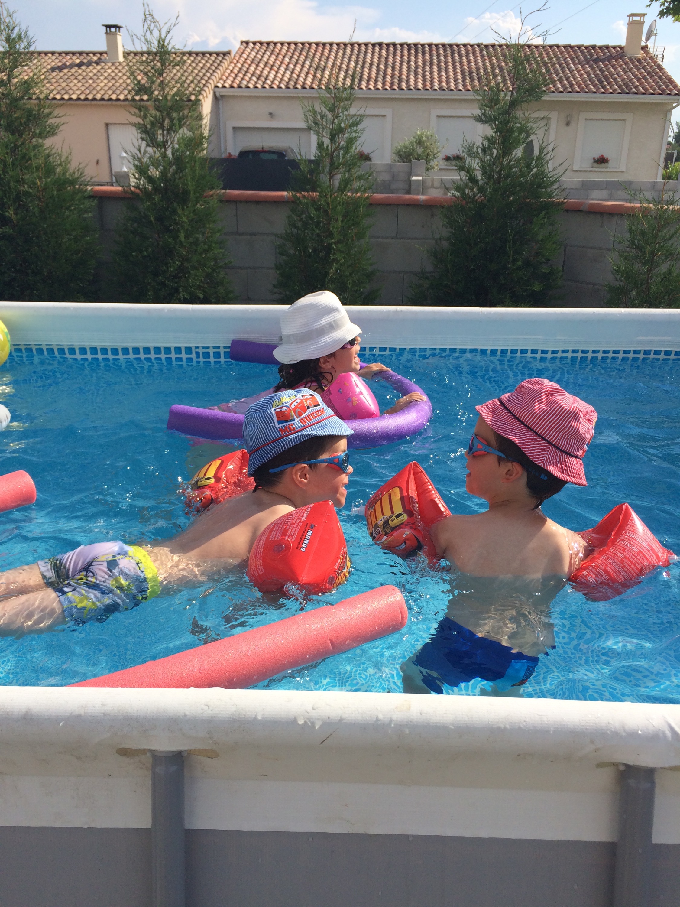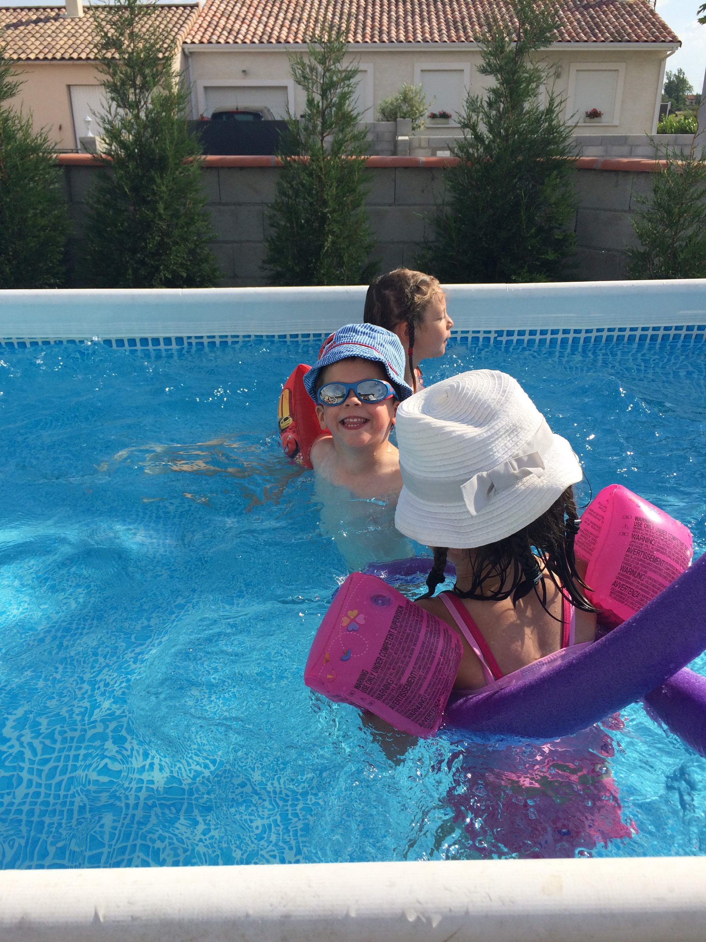 Les enfants dans la piscine de la voisine