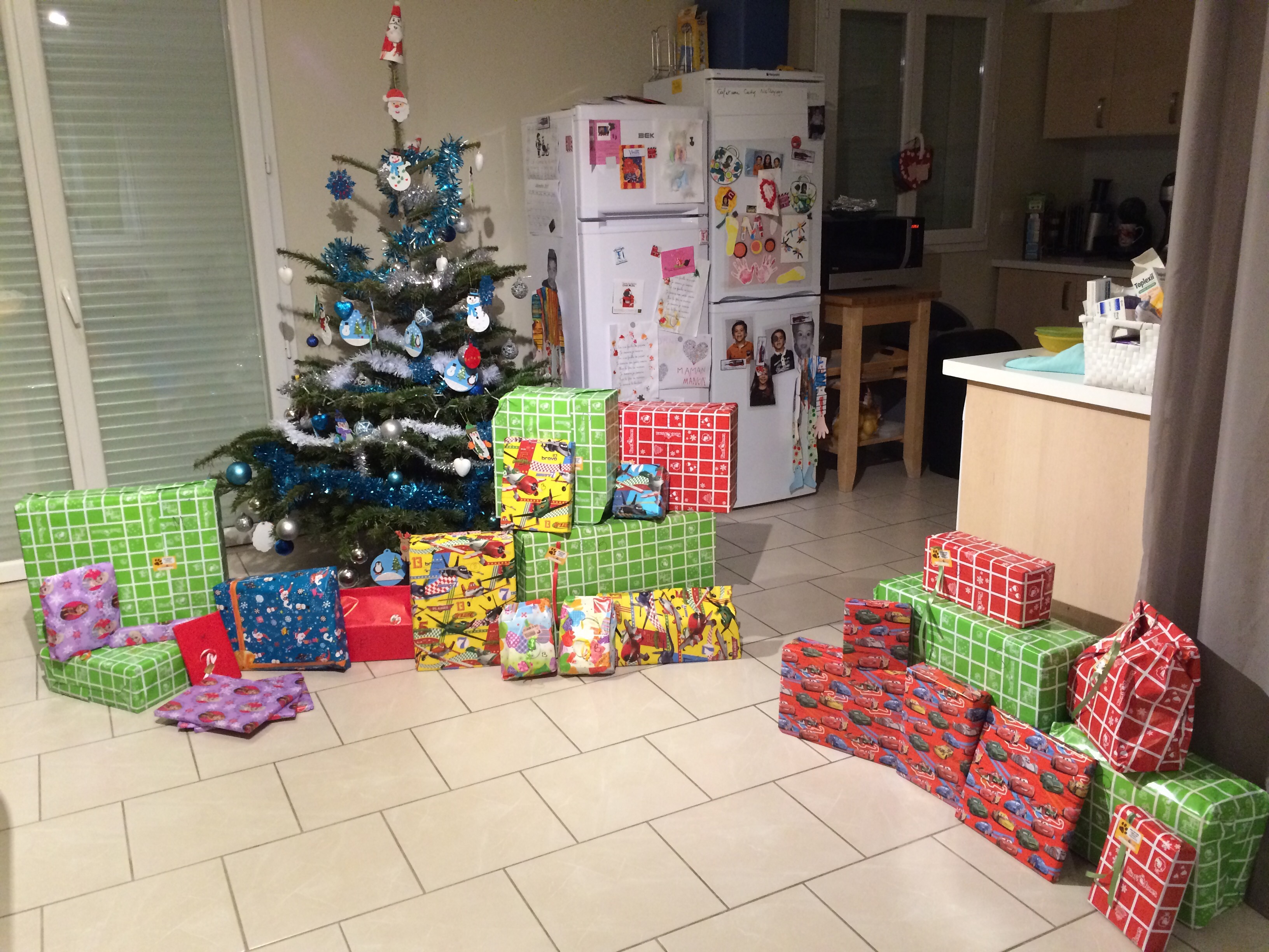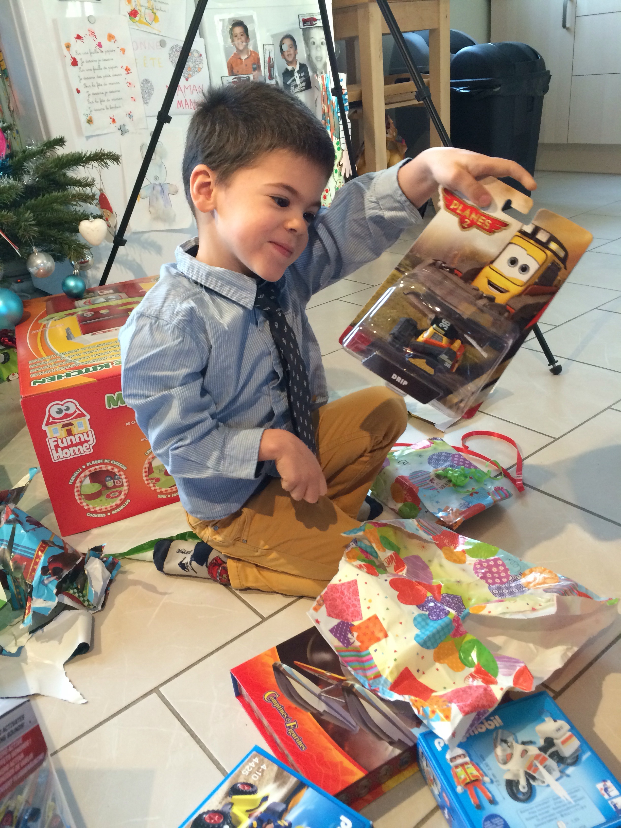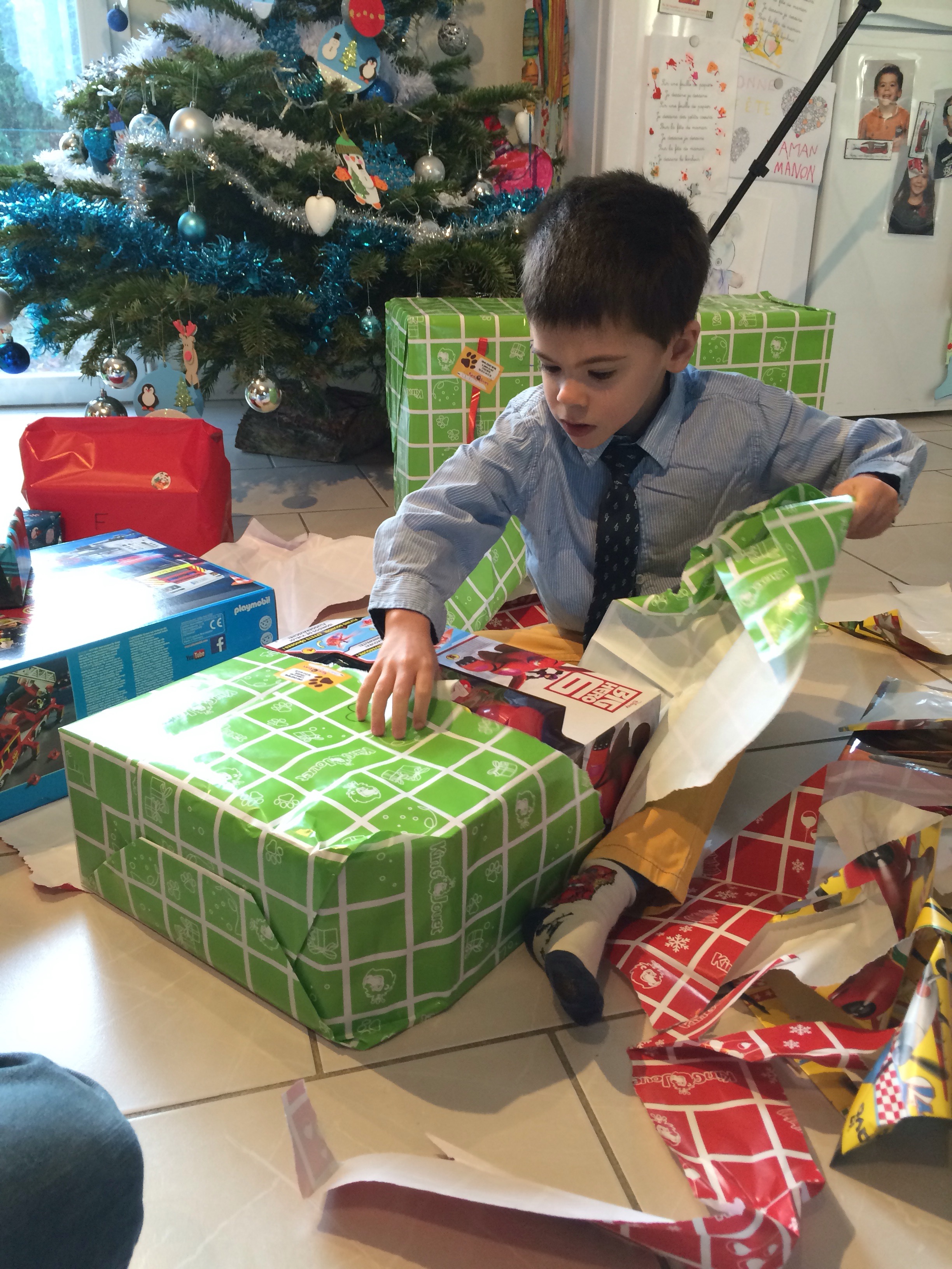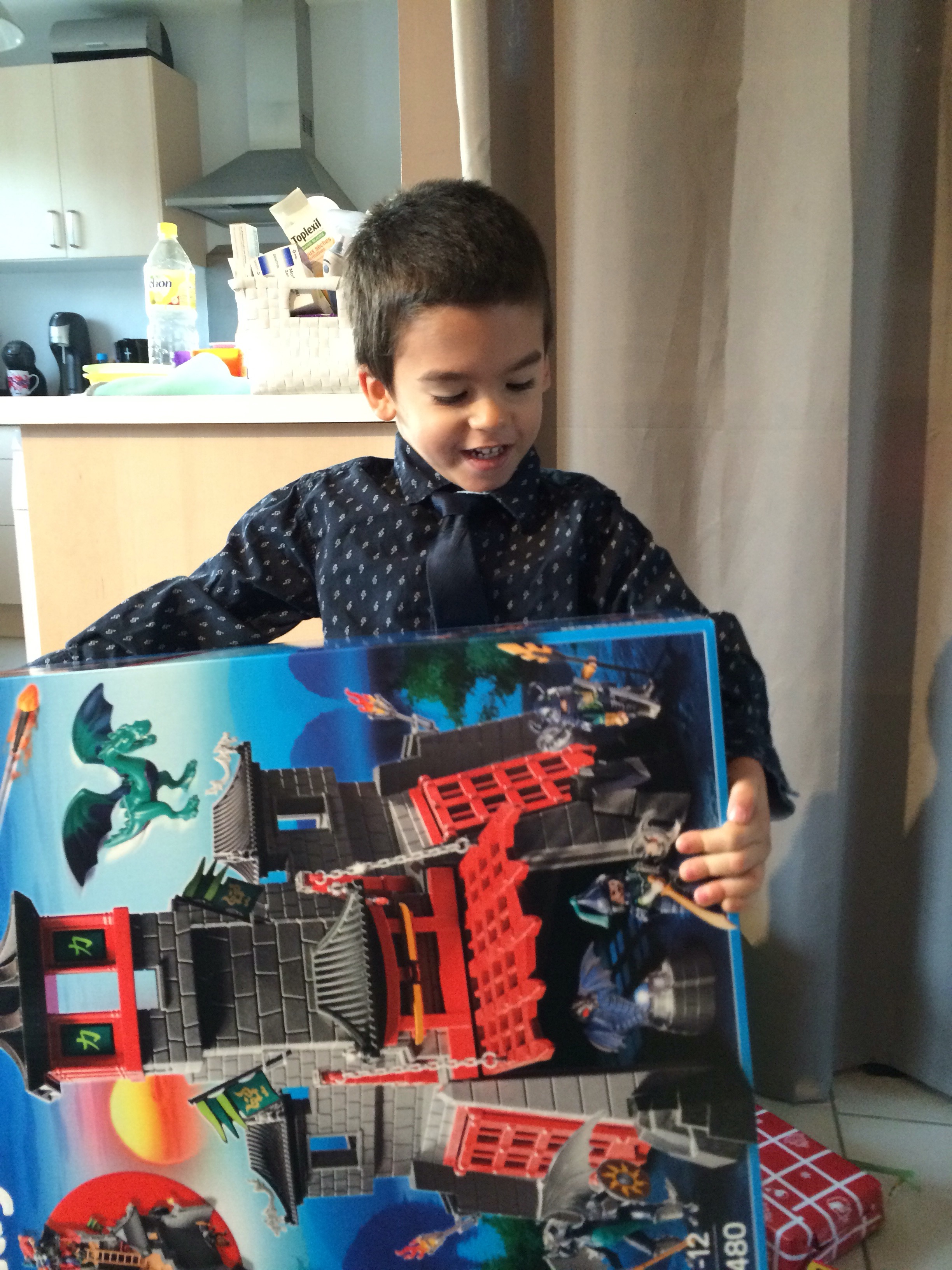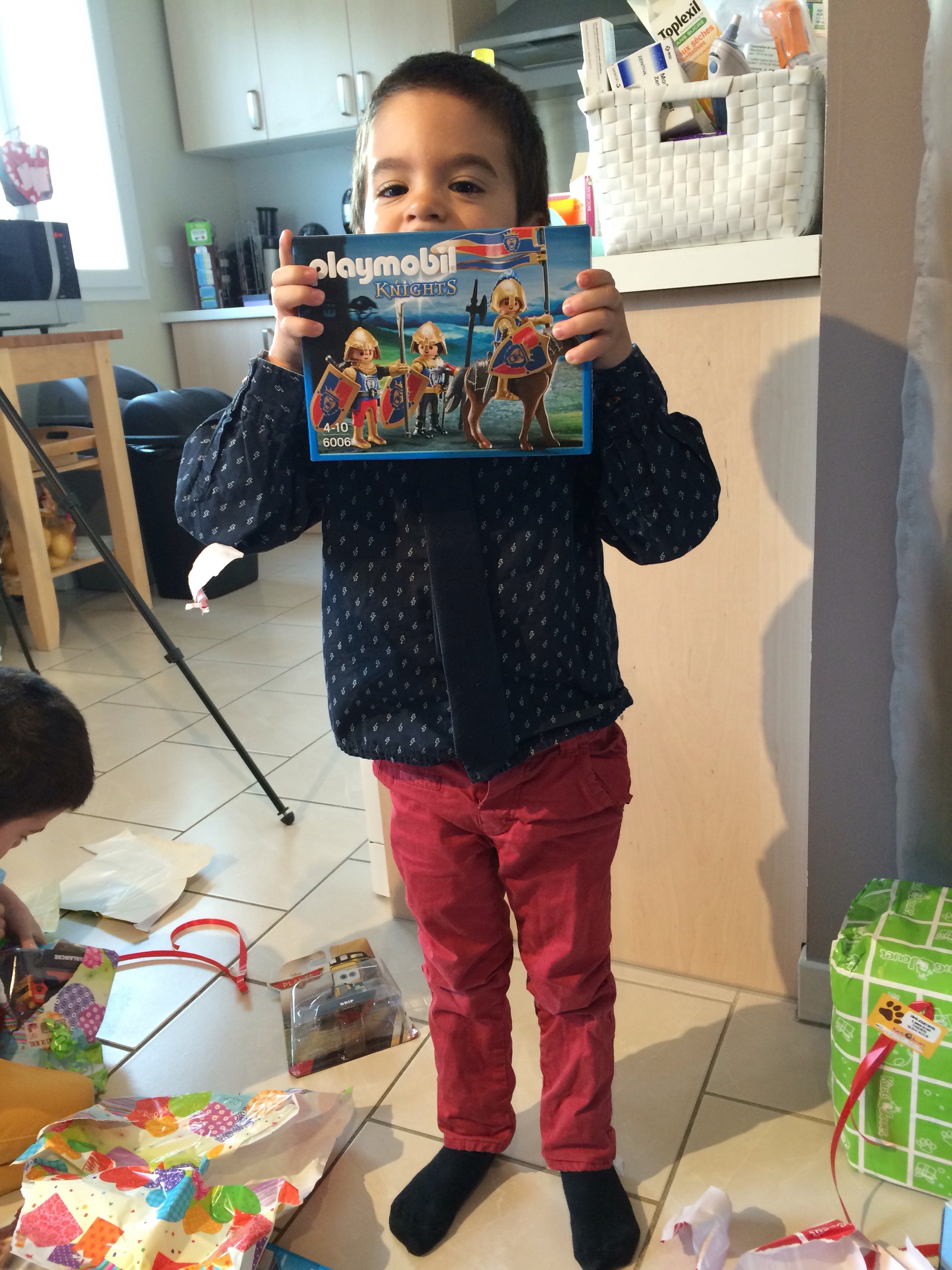 Noël des enfants Publié le 25 décembre 2015 par Elodie 2 Merci aux papys mamys tatas : les enfants sont ravis Et voici les playmobil une fois montés par papa pour le gros château il n’y aque le château de gauche l’autre Quentin l’avait eu à son anniversaire