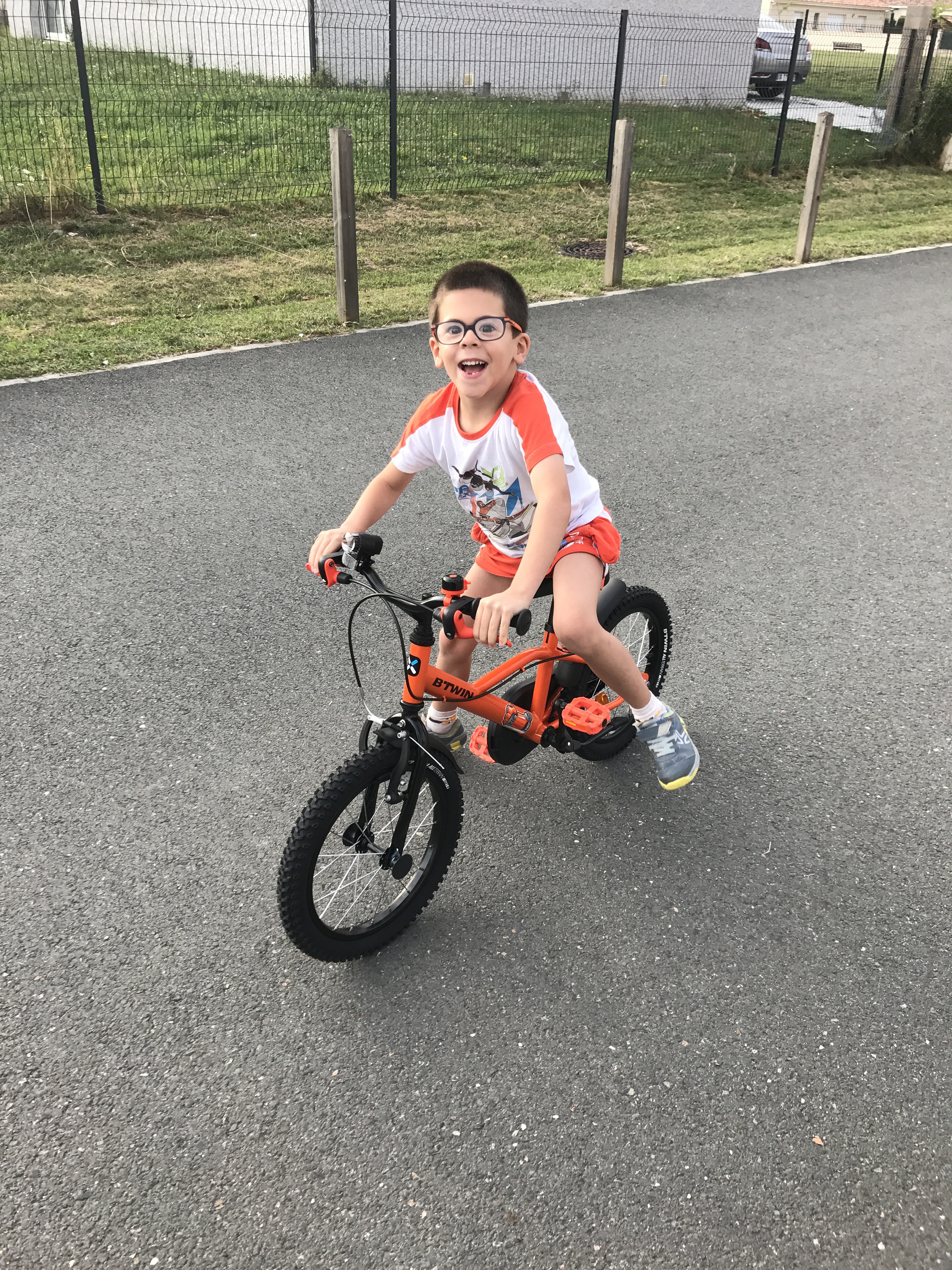 Baptiste fait du vélo sans les petites roues